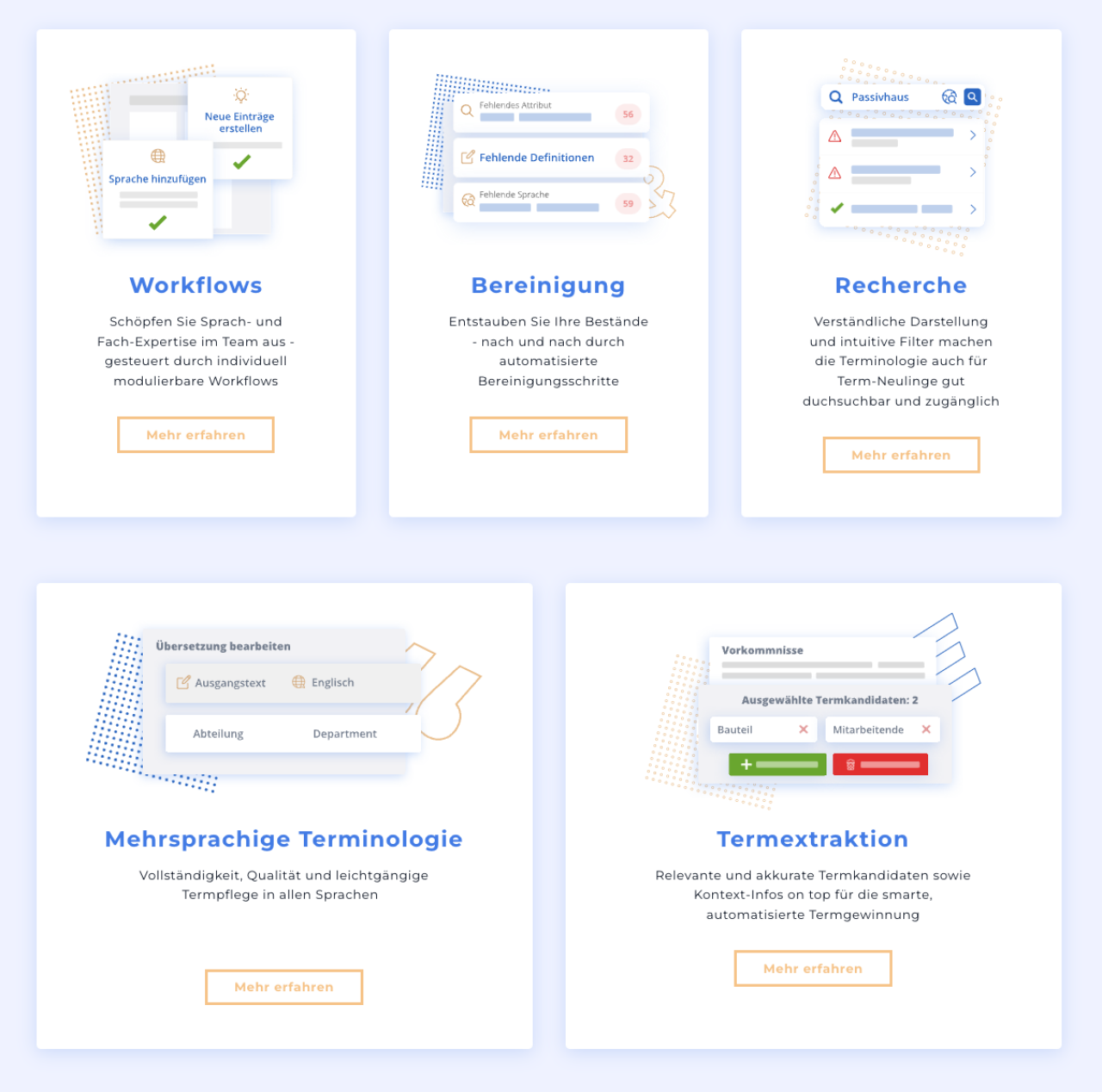 Produktpräsentationen: Features lassen sich in einzelnen Kacheln anschaulich darstellen.