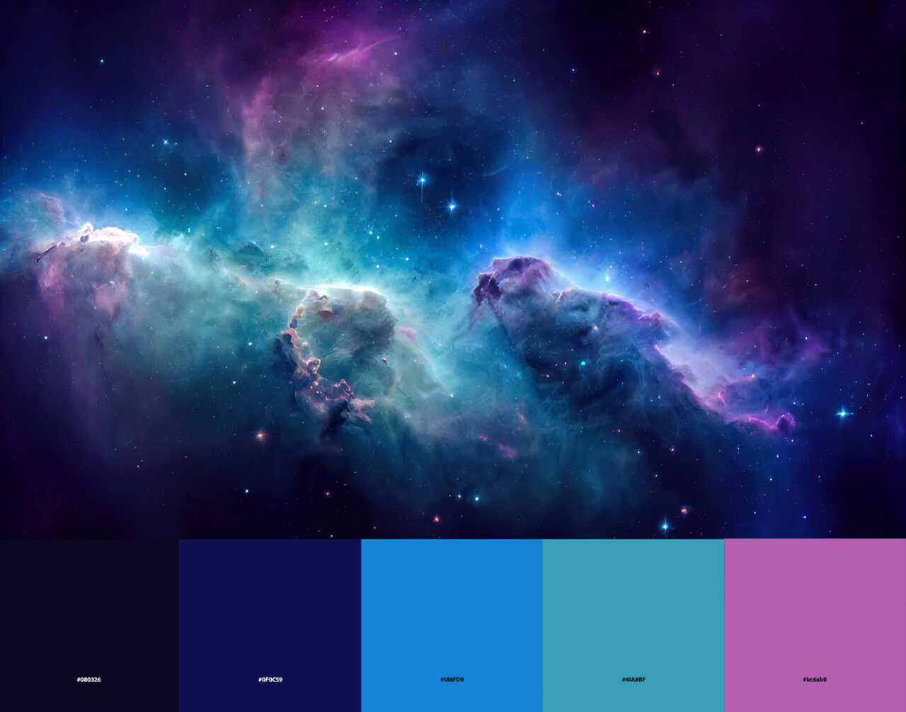 Inspiration für diesen Trend liefern unter anderem Weltraumaufnahmen der NASA, die mit ihren tiefen Schwarztönen und leuchtenden Farben eine fast futuristische Ästhetik erzeugen. Ob als Highlights für Call-to-Action-Elemente, sanfte Farbverläufe oder auffällige Hintergründe – lebendige Farben ziehen die Aufmerksamkeit auf sich und lassen Designs dynamischer und moderner wirken. Entscheidend ist dabei eine gezielte Farbwahl, die nicht nur optisch anspricht, sondern auch die Markenidentität unterstützt.