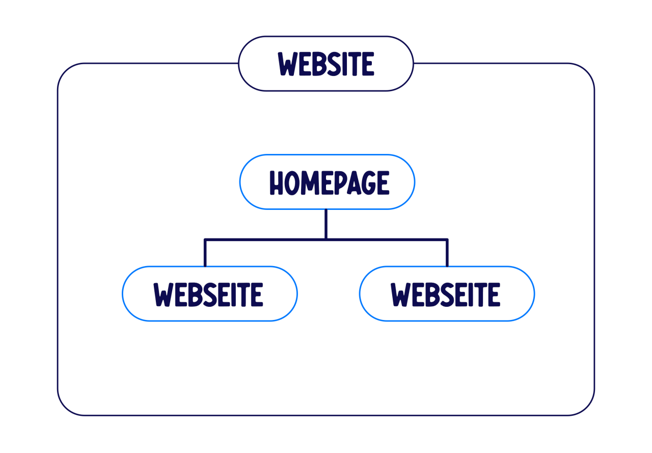 Eine Website wird oft durch eine eigene Domain (deinefirma.de) gekennzeichnet, dies ist aber nicht zwingend notwendig. Es gibt Websites, die sich über mehrere Domains erstrecken (deinefirma.de und deinefirma.com) und Websites, die sich eine Domain mit anderen Websites teilen (deinefirma.deinestadt.de).
