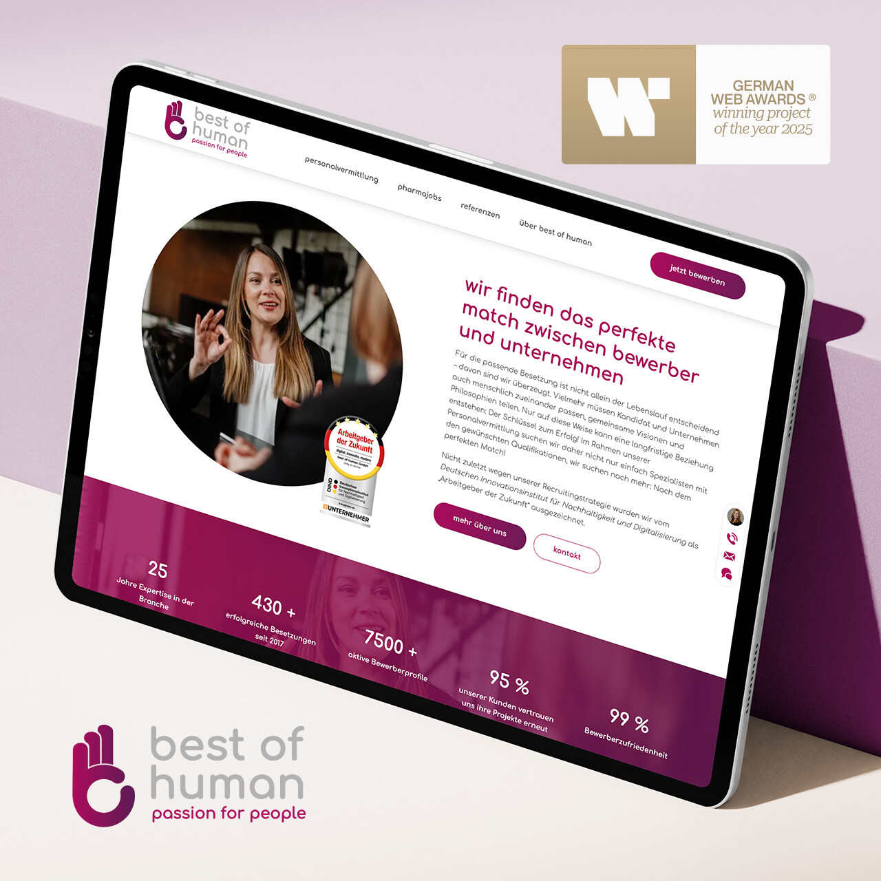 Die Umsetzung umfasste Konzeption, Design, technische Entwicklung sowie ein maßgeschneidertes, dynamisches Frontend – realisiert mit Vue.js und Alpine.js. Die Inhalte werden ortsabhängig ausgespielt und durch interaktive Animationen lebendig vermittelt. Das System ist vollständig redaktionell pflegbar und für den Einsatz auf mobilen und stationären Endgeräten optimiert. Die GARBE World verbindet auf eindrucksvolle Weise Corporate Storytelling mit technischer Raffinesse.