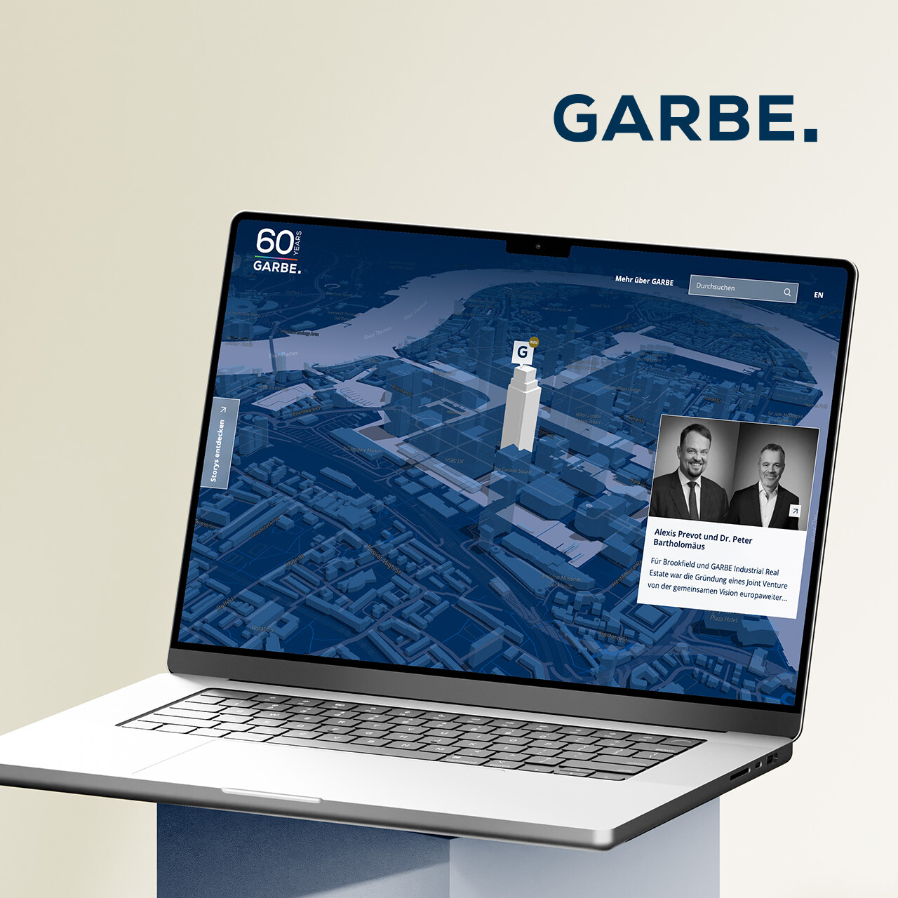 Anlässlich des 60-jährigen Firmenjubiläums konzipierte Homepage Helden eine interaktive Microsite auf Basis des Statamic CMS: die GARBE World. Ziel war es, die Geschichte, Werte und Projekte des Unternehmens auf innovative Weise erlebbar zu machen. Die digitale Weltkarte erlaubt den Besucher:innen, zentrale Stationen und Meilensteine der GARBE Historie sowie aktuelle Projekte, Partnerschaften und Zukunftsinitiativen direkt auf einer interaktiven Oberfläche zu entdecken.