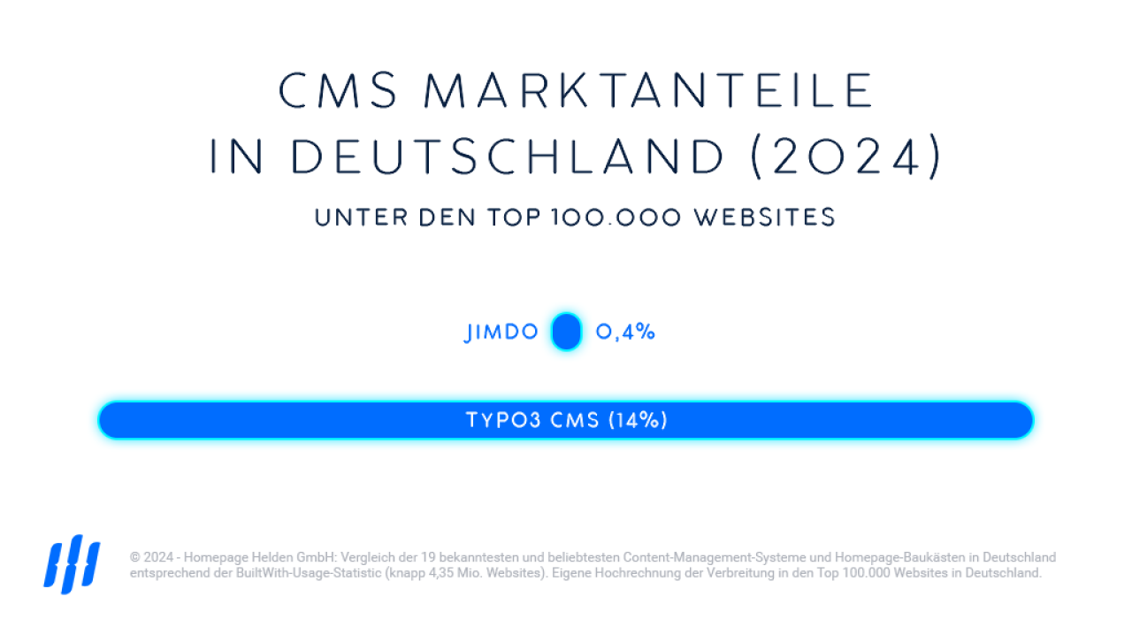 Marktanteile von Jimdo und TYPO3, sowie weiterer Systeme im Vergleich: