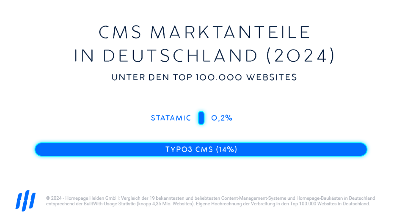 Marktanteile von Statamic und TYPO3, sowie weiterer Systeme im Vergleich: