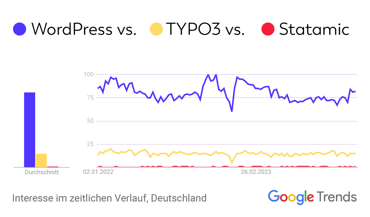 Zwei in Deutschland sehr beliebte CMS sind WordPress und TYPO3. Statamic ist ein relativ neues CMS, das weniger bekannt ist, aber an Beliebtheit stetig zunimmt.