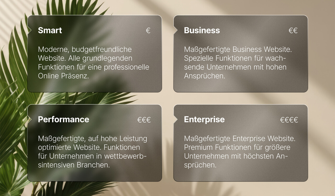 Die Frage nach den Kosten für eine Unternehmens-Homepage beantworten wir dir exemplarisch in der Übersicht unserer Festpreisangebote. Selbstverständlich kalkulieren wir dir auch gerne ein individuell auf deine Anforderungen zugeschnittenes Angebot.
