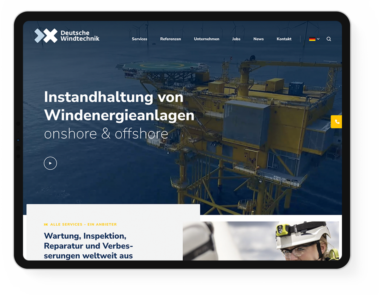 Für die Deutsche Windtechnik, den Spezialisten für die Instandhaltung von Windenergieanlagen, haben wir eine moderne Website entwickelt, die ihren hohen Ansprüchen gerecht wird.